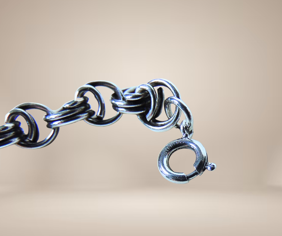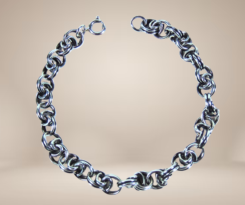 Mooie vintage zilveren armband met dubbele Jasseron schakels die in elkaar grijpen. Dit geeft een robuust en speels karakter aan de armband.