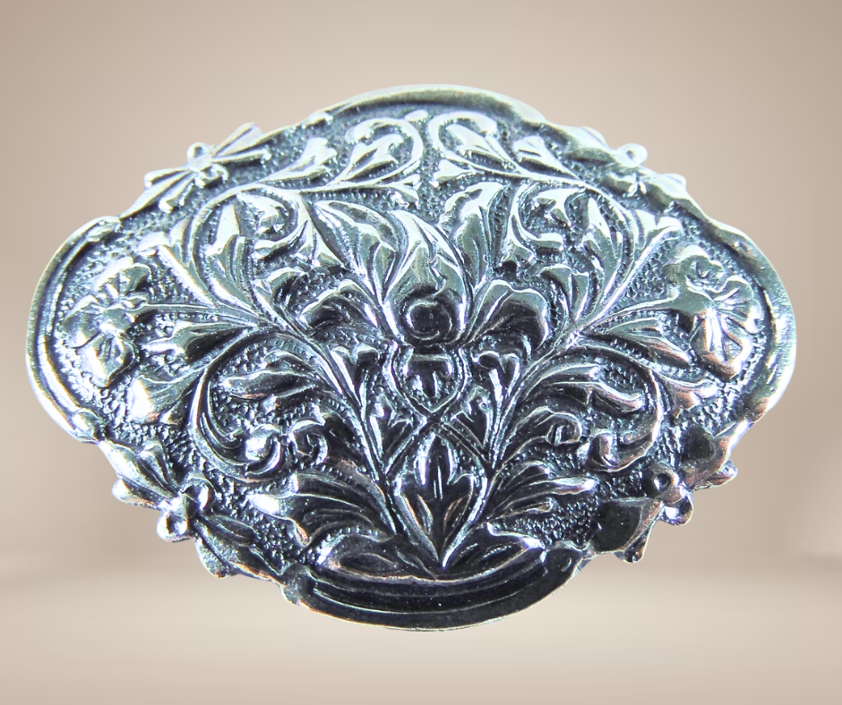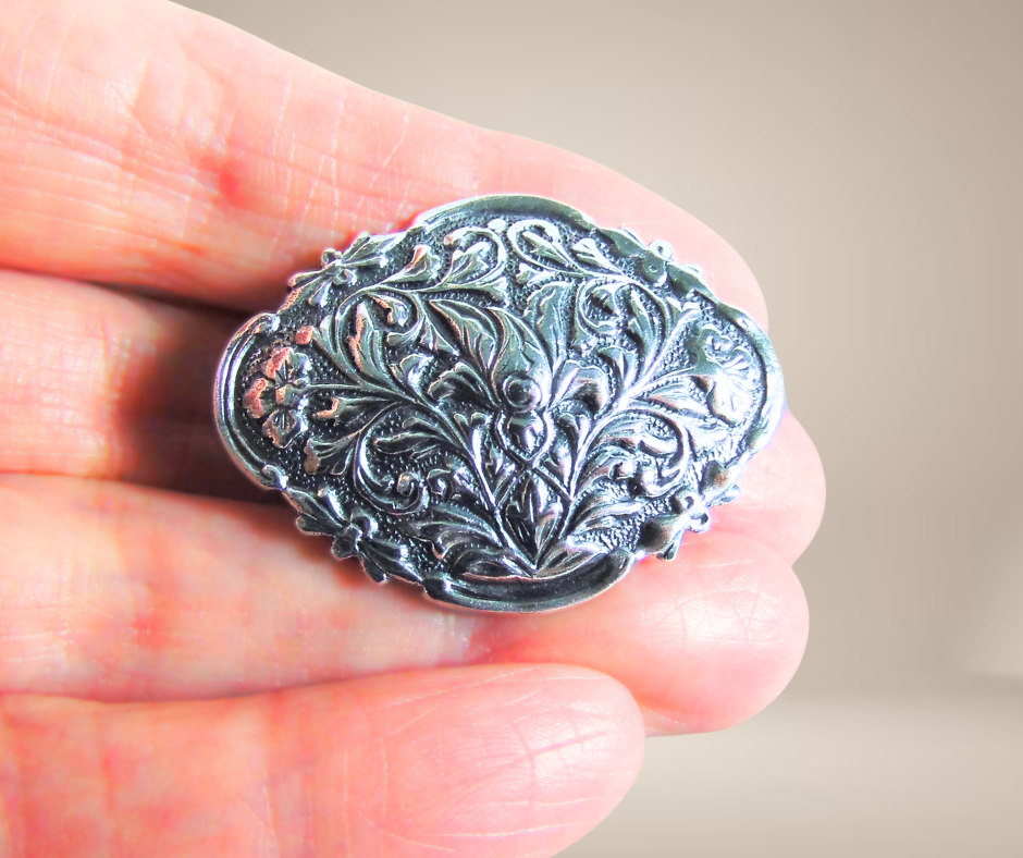 Zeer mooie antiek zilveren Art Nouveau broche, volledig gedreven met florale motieven. Hij heeft een eenvoudige haaksluiting.
