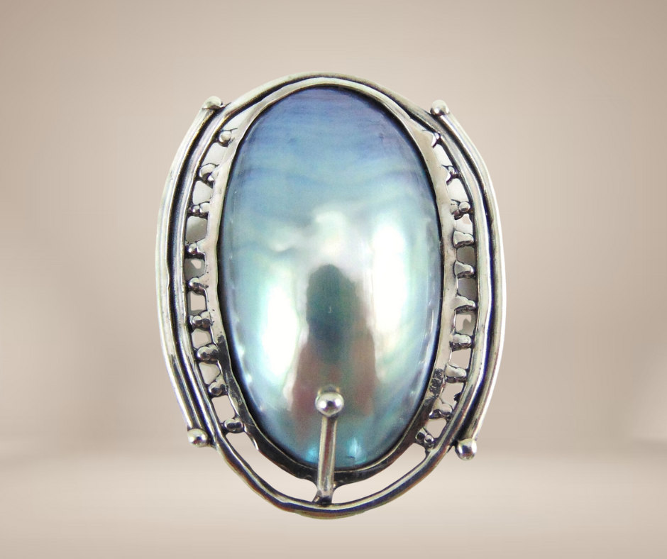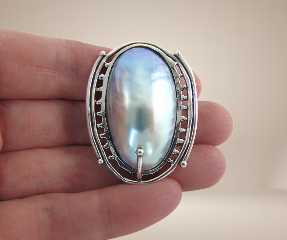Schitterende in nieuwe staat verkerende, unieke gesp, gezet met een grote Osmena- of Nautilus* parel.