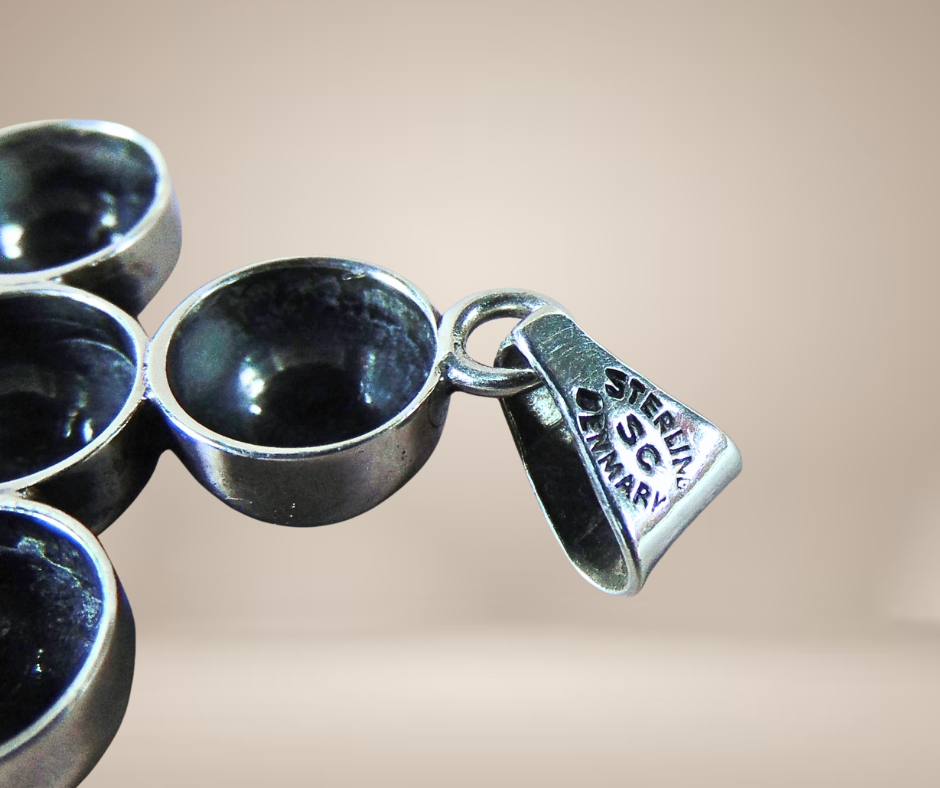 Prachtig modernistische zilveren hanger, gemerkt Sterling Denmark en SC voor de designer Scrouples.