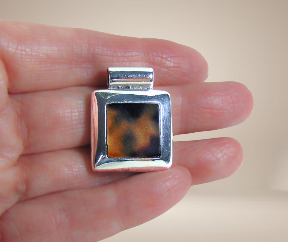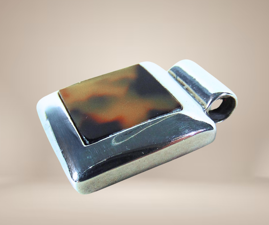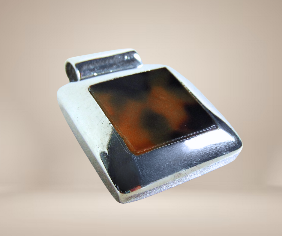 Mooie grote en zware zilveren handgemaakte hanger, ingelegd met tijger Kauri schelp.