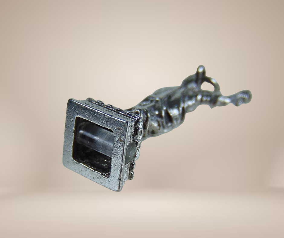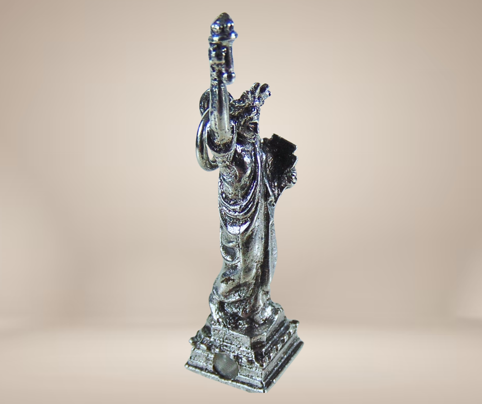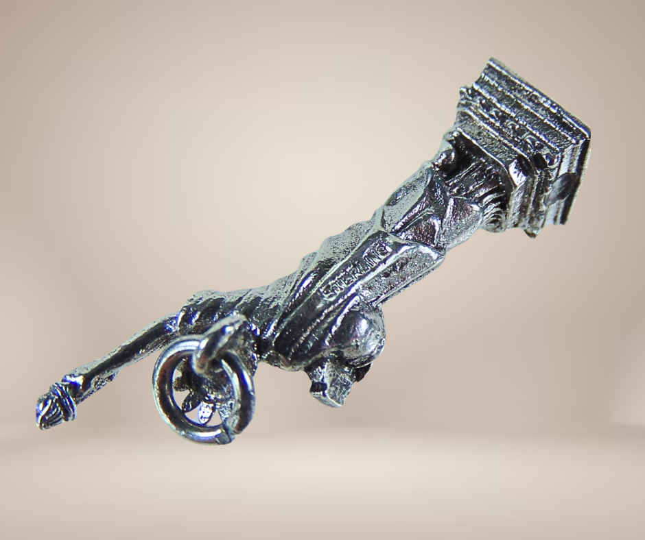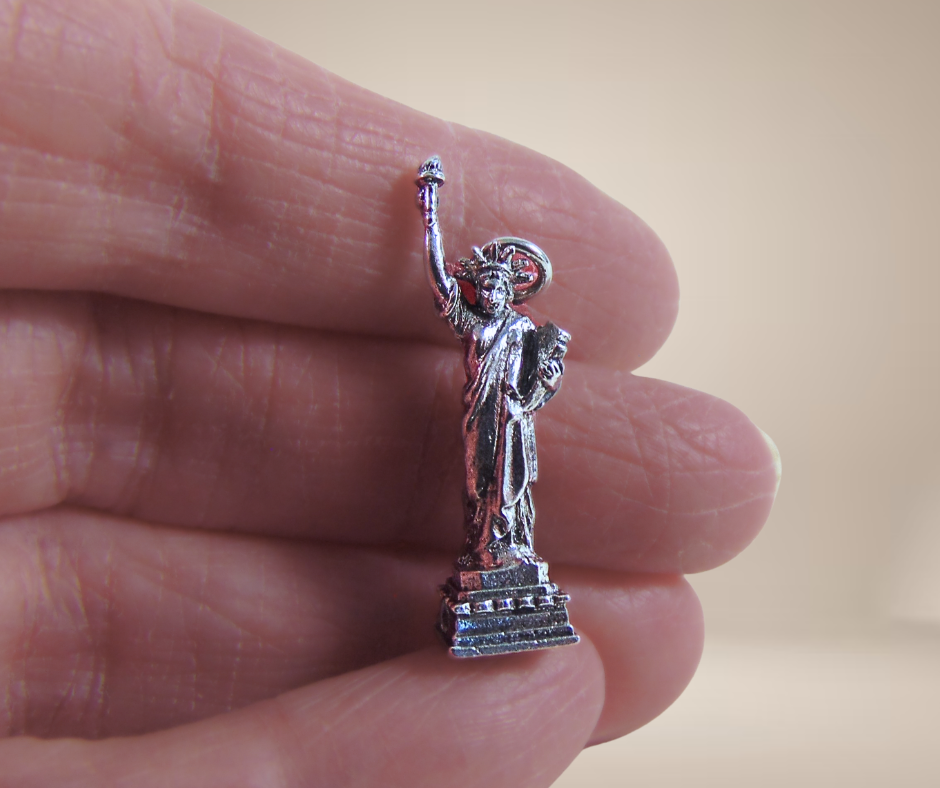 Leuke gedetailleerd zilveren bedel/hanger in de vorm van het Vrijheidsbeeld of Statue of Liberty met een Stanhope lensje waardoor je een afbeelding van de skyline van New York zou kunnen zien. Ik zie het helaas niet, dit kan aan mijn ogen liggen ;), het kan ook zo zijn dat het lensje binnenin is beschadigd, daarom wordt hij verkocht voor een redelijke prijs.