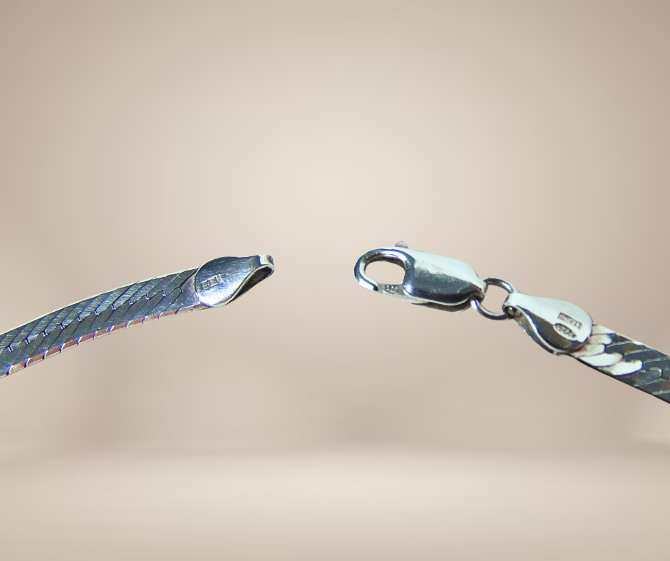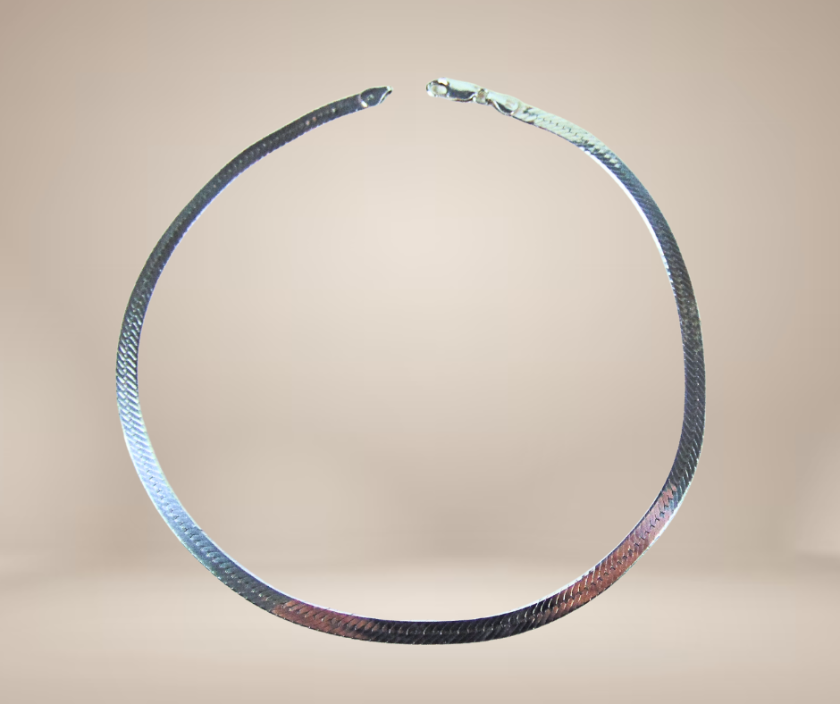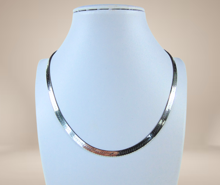 Mooie elegante zilveren ketting, gemaakt door Italiaans designer ACI in de tweede helft van de 20ste eeuw. De ketting heeft een platte visgraatschakel en een goedwerkende karabijnsluiting.