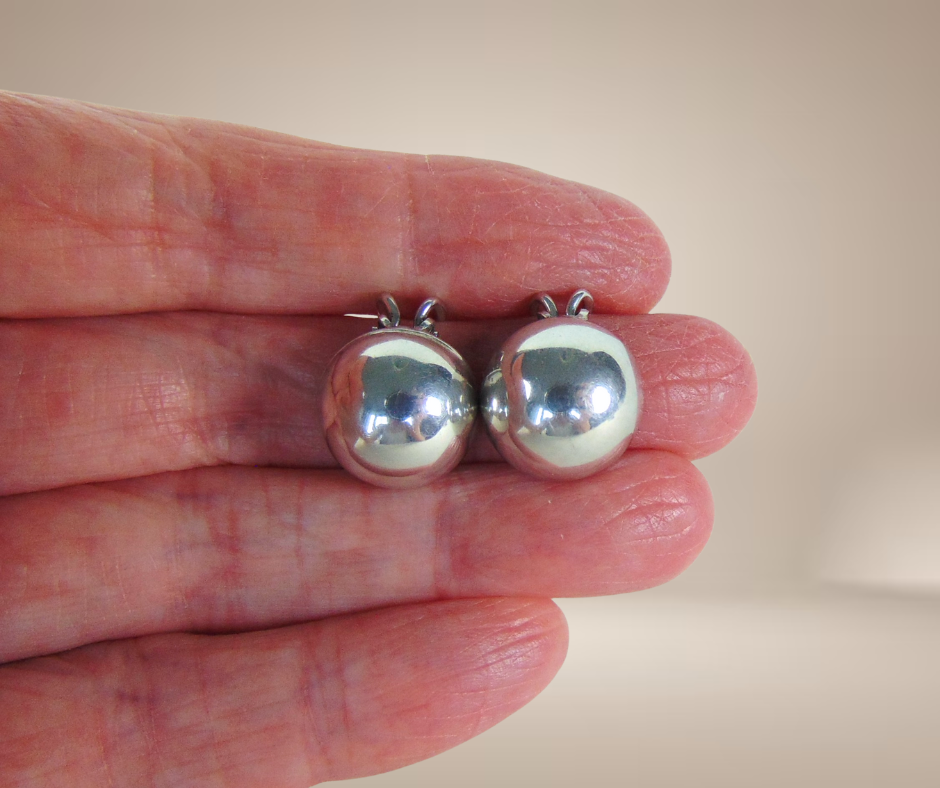 Supermooie grote zilveren halve bol oorbellen uit de jaren 50/60 met goedwerkende clips.