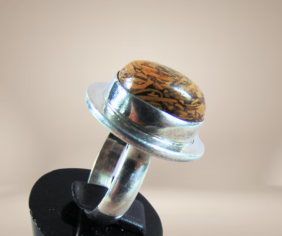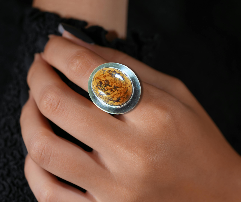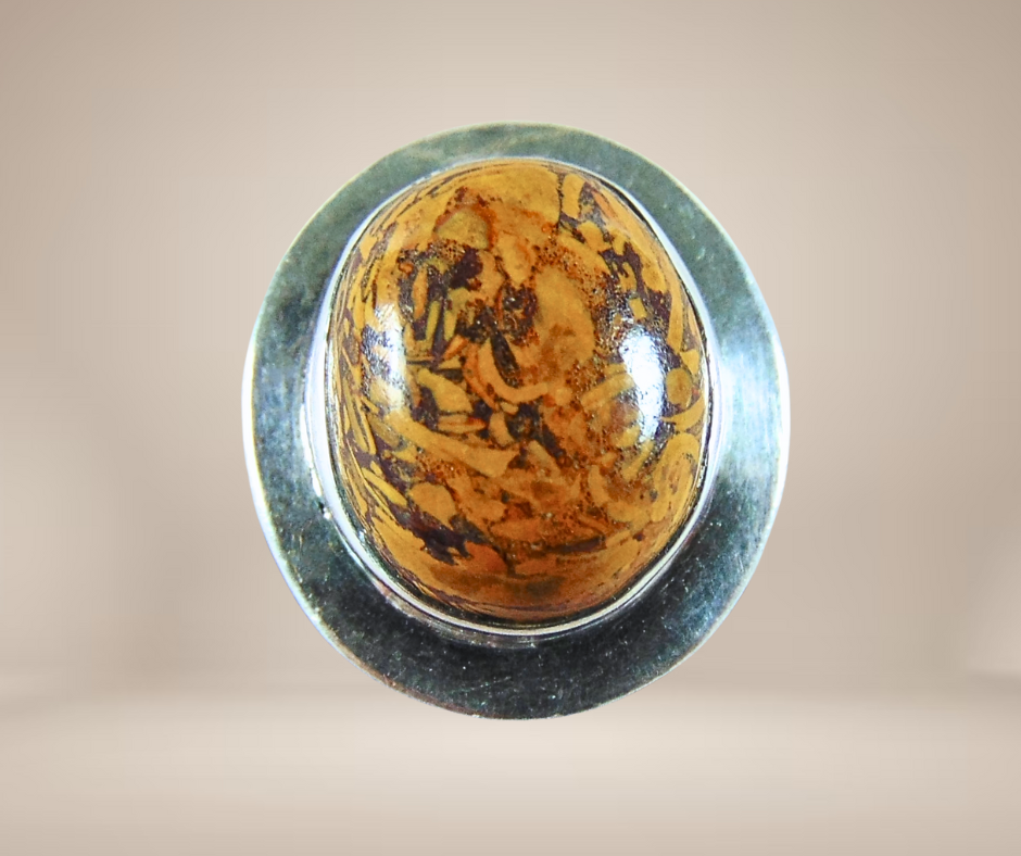 Schitterende zware en grote nieuwe zilveren ring, met de hand gemaakt en gemerkt 925. Hij is gezet met een natuurlijke mahonieobsidiaan cabochon.