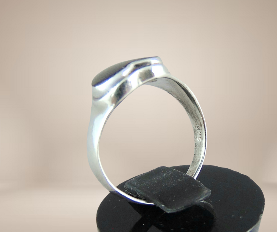 Mooie vintage 925 zilveren ONYX HART ring Maat 17/17,5
